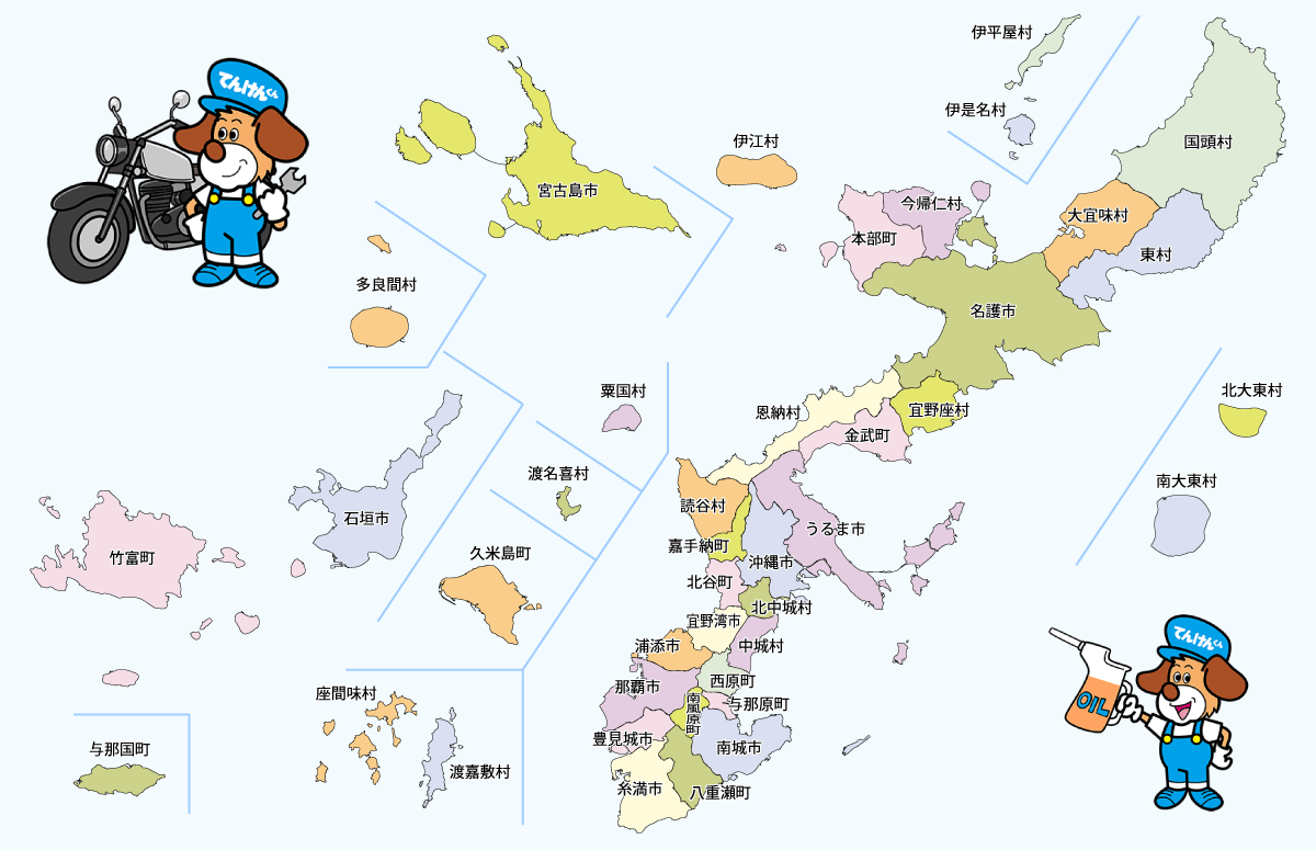 | 与那城 (よなぐすく) | 1801 | 花城モータース | 字与那城321-1 | 098-943-2750 |